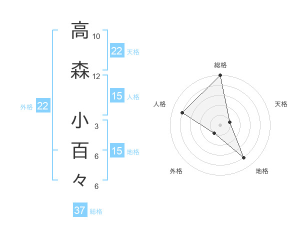 高森 小百々さんの総格は37画の5点!