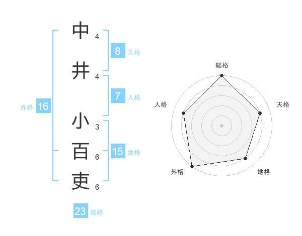 中井 小百吏さんを姓名の画数から五運を鑑定