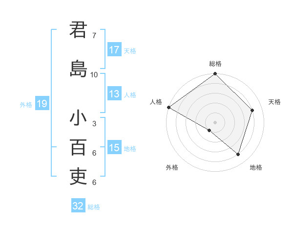 君島 小百吏さんの総格は32画の5点!