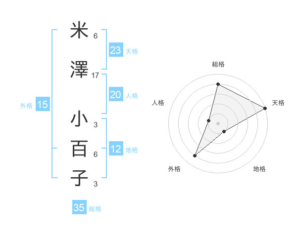 米澤 小百子さんを姓名の画数から五運を鑑定