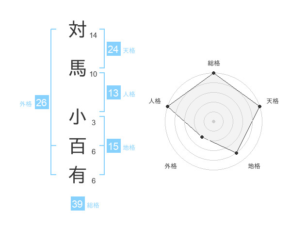 対馬 小百有さんの総格は39画の5点!