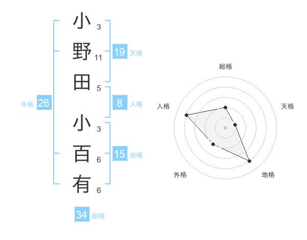 小野田 小百有さんを姓名の画数から五運を鑑定