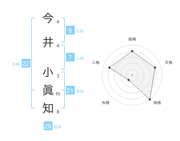 今井 小眞知さんを姓名の画数から五運を鑑定