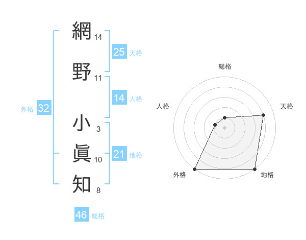 網野 小眞知さんの外格は32画の5点