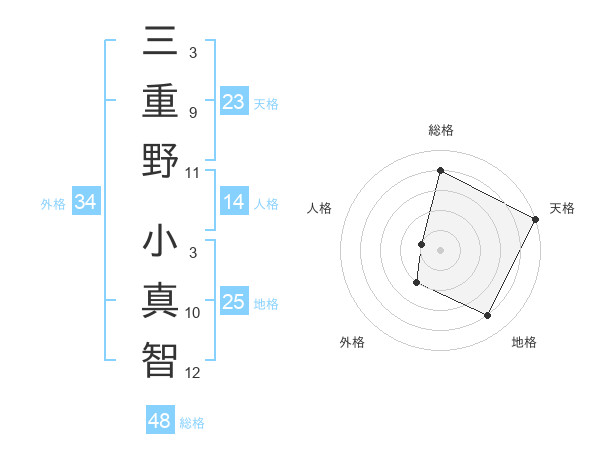 三重野 小真智さんを姓名の画数から五運を鑑定