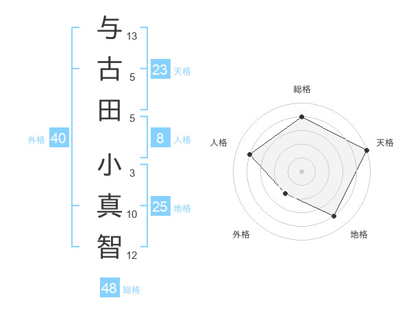 与古田 小真智さんを姓名の画数から五運を鑑定