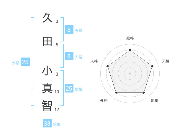 久田 小真智さんの外格は25画の4点!