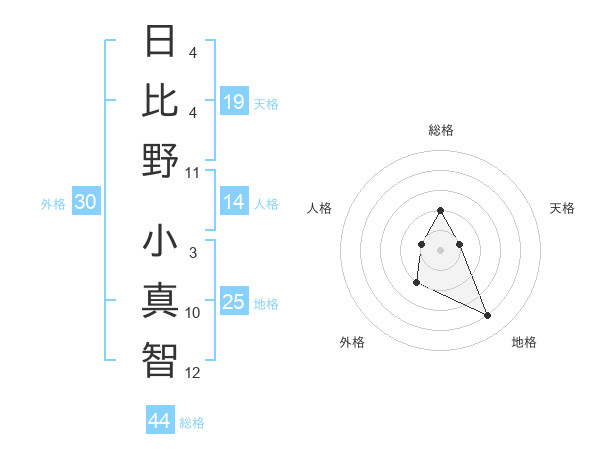 日比野 小真智さんの総格は44画の2点!