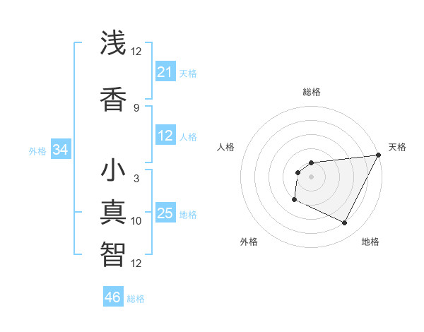 浅香 小真智さんを姓名の画数から五運を鑑定