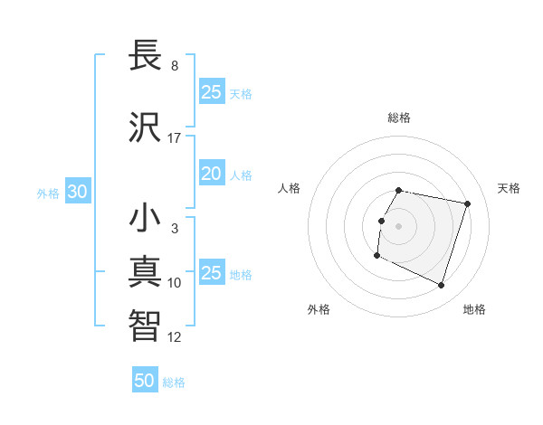 長沢 小真智さんを姓名の画数から五運を鑑定