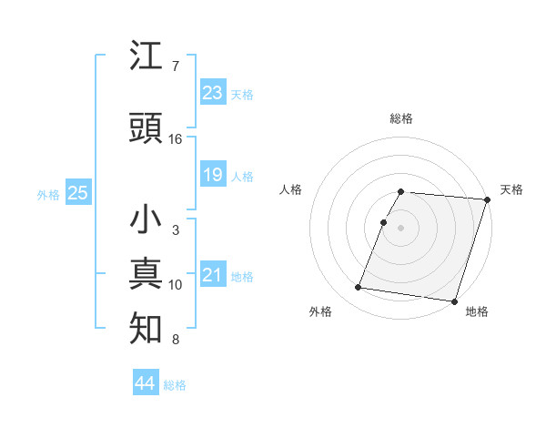江頭 小真知さんの総格は44画の2点