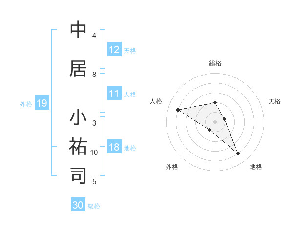 中居 小祐司さんの総格は30画の2点!