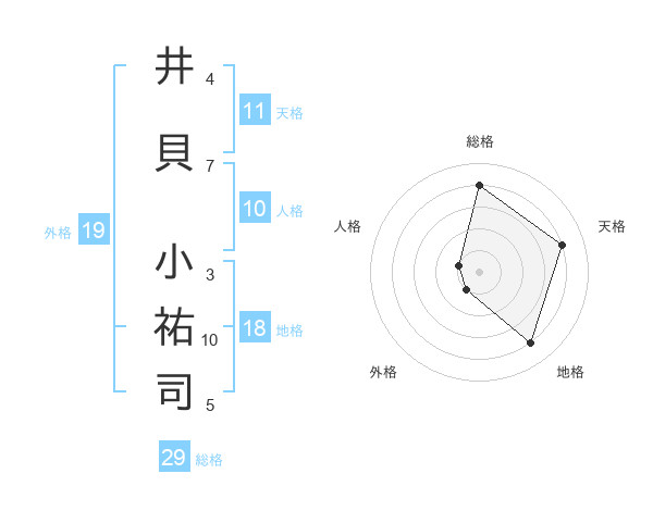 井貝 小祐司さんの総格は29画の4点!