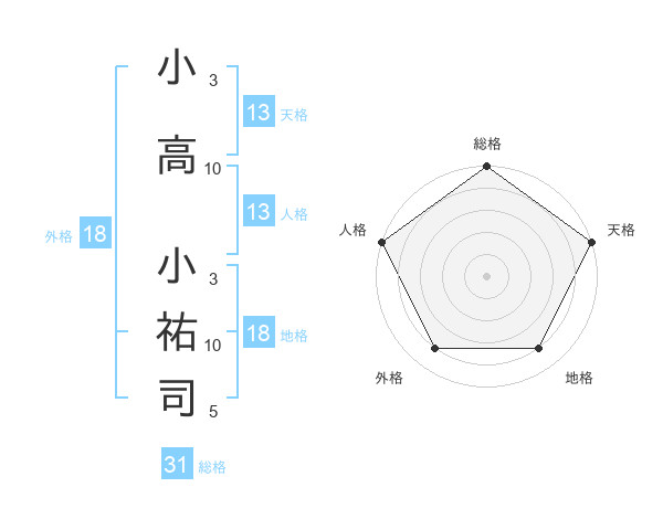 小高 小祐司さんの天格は13画の5点!