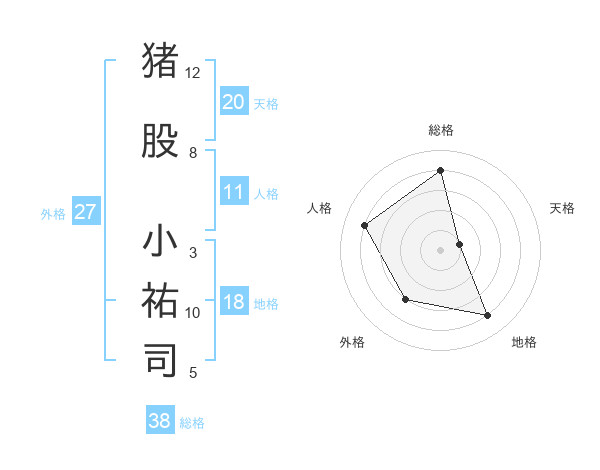 猪股 小祐司さんを姓名の画数から五運を鑑定