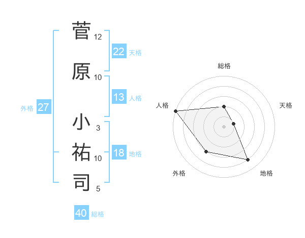 菅原 小祐司さんの総格は40画の2点!