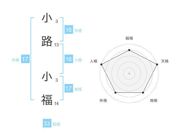 小路 小福さんの天格は16画の5点!