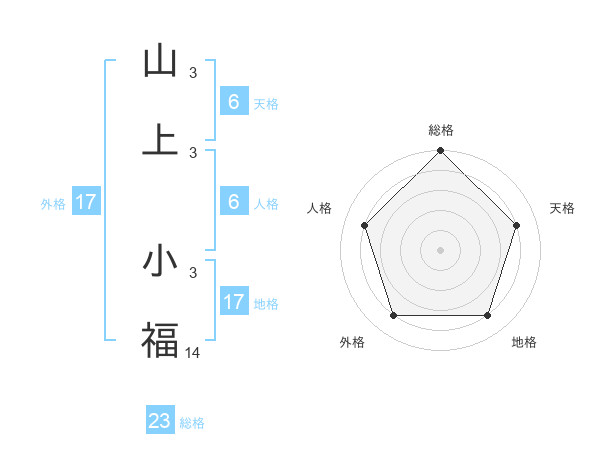 山上 小福さんの総格は23画の5点!