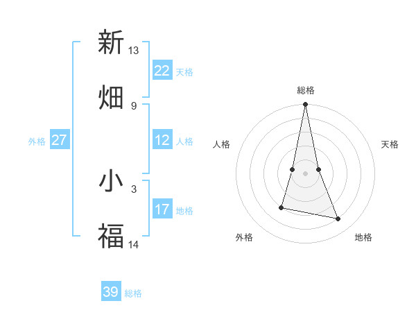 新畑 小福さんの総格は39画の5点!