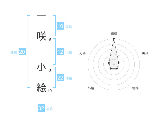 一咲 小絵さんを姓名の画数から五運を鑑定