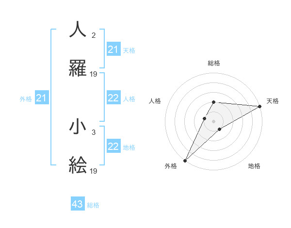 人羅 小絵さんの総格は43画の2点!