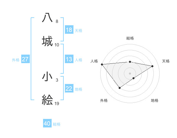 八城 小絵さんの総格は40画の2点!