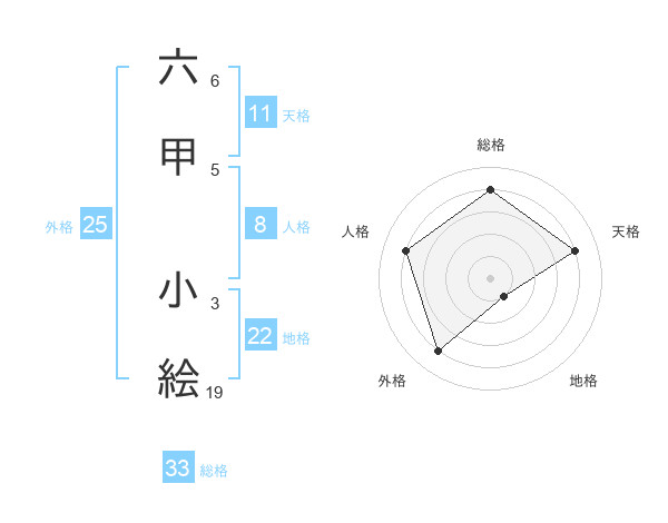 六甲 小絵さんの総格は33画の4点!