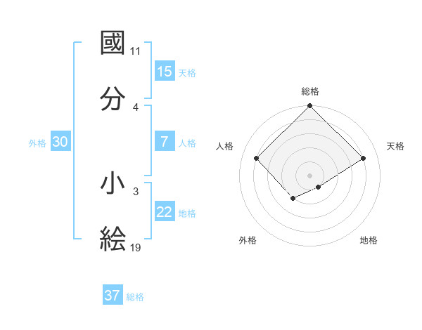 國分 小絵さんの総格は37画の5点!