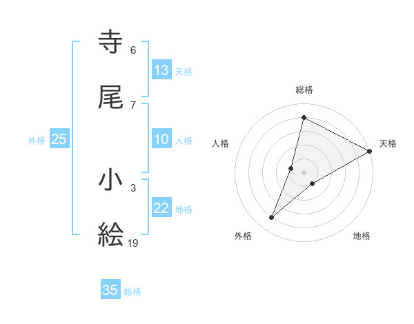 寺尾 小絵さんを姓名の画数から五運を鑑定