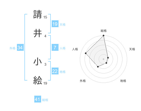 請井 小絵さんの総格は41画の5点!