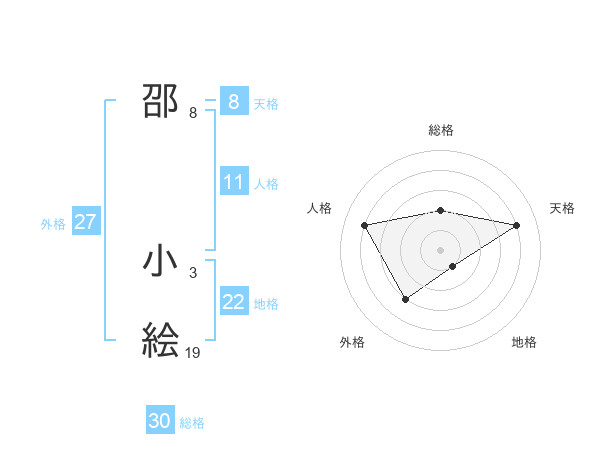 邵 小絵さんの総格は30画の2点!