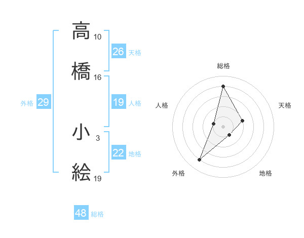 高橋 小絵さんの総格は48画の4点!