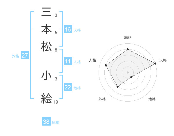 三本松 小絵さんの総格は38画の4点!