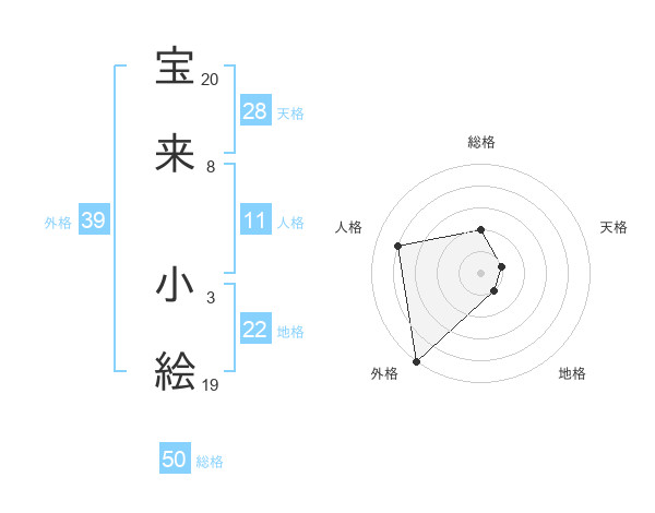 宝来 小絵さんを姓名の画数から五運を鑑定