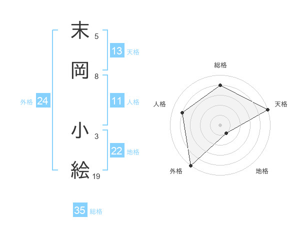 末岡 小絵さんを姓名の画数から五運を鑑定