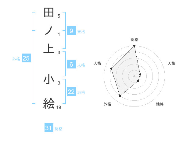 田ノ上 小絵さんを姓名の画数から五運を鑑定