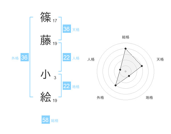 篠藤 小絵さんを姓名の画数から五運を鑑定