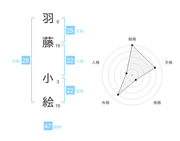 羽藤 小絵さんを姓名の画数から五運を鑑定