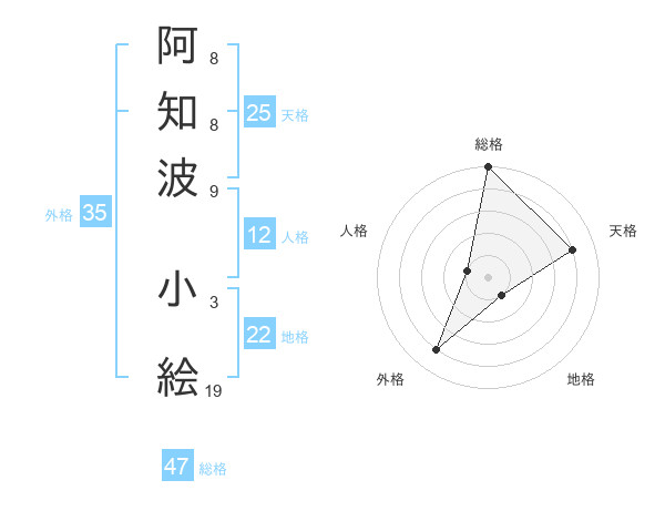 阿知波 小絵さんを姓名の画数から五運を鑑定