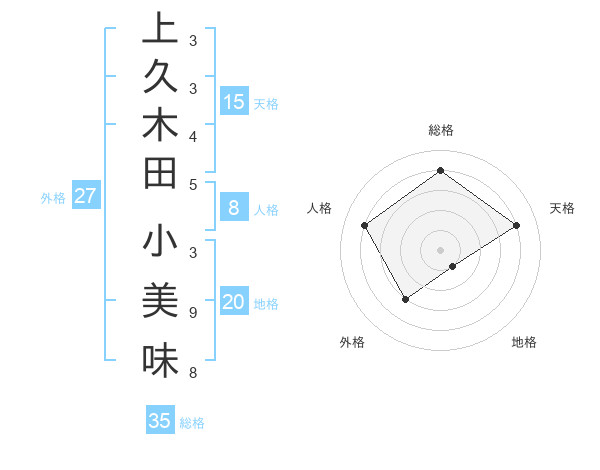 上久木田 小美味さんを姓名の画数から五運を鑑定