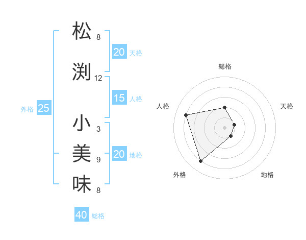 松渕 小美味さんを姓名の画数から五運を鑑定