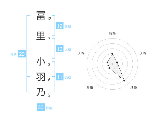 冨里 小羽乃さんを姓名の画数から五運を鑑定
