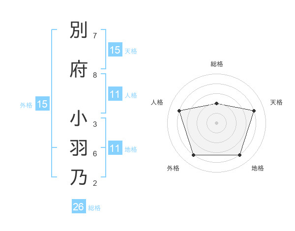 別府 小羽乃さんの天格は15画の4点!