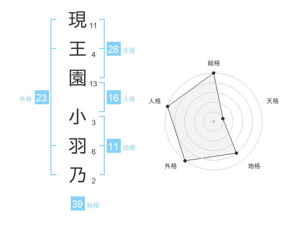現王園 小羽乃さんを姓名の画数から五運を鑑定