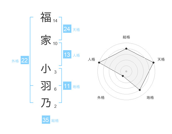 福家 小羽乃さんの外格は22画の1点!