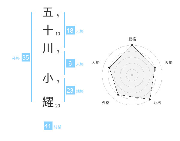 五十川 小耀さんを姓名の画数から五運を鑑定