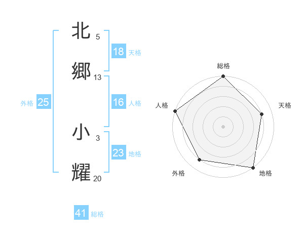 北郷 小耀さんを姓名の画数から五運を鑑定