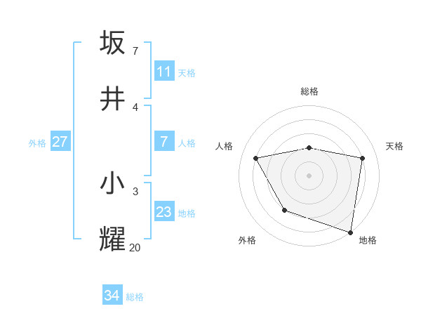 坂井 小耀さんを姓名の画数から五運を鑑定