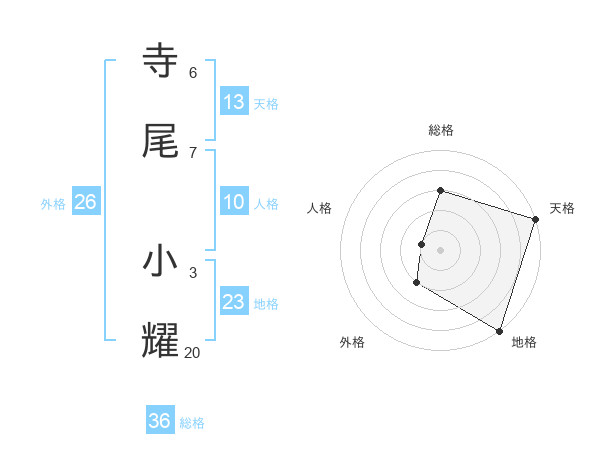 寺尾 小耀さんを姓名の画数から五運を鑑定