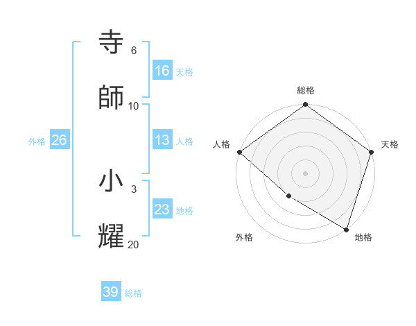 寺師 小耀さんの天格は16画の5点!